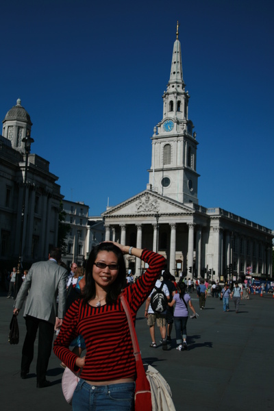 St. Martin in the fileds church 位於國家藝廊隔壁, 其外形十分幽雅, 裡面有音樂廳, 不時有音樂會演出, 我們經過時還看到有中文崇拜的時間, 原本我們還想參加禱告會, 但一進去看到神父, 就又跑出來了, 大概怕神父會要我們告解吧,我們在飛機上剛好看了"非誠勿擾"的影片, 後來想想或許可以搗蛋一下, 看神父聽懂不懂國語, 不過有中文崇拜的教堂就很難說了。因為我們分好幾次去看國家藝廊, 常跑去這個教會的地下室餐廳光顧,氣氛還不錯。