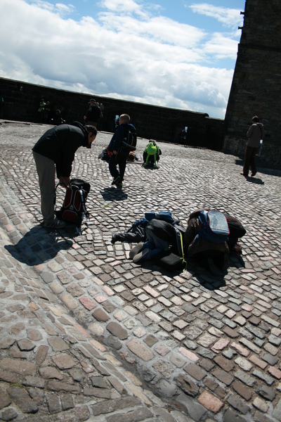 Edinburgh Castle裡的校外教學, 小男孩忙著玩大砲, 窺看井, 小女孩乖乖聽老師講解, 有趣的對比。